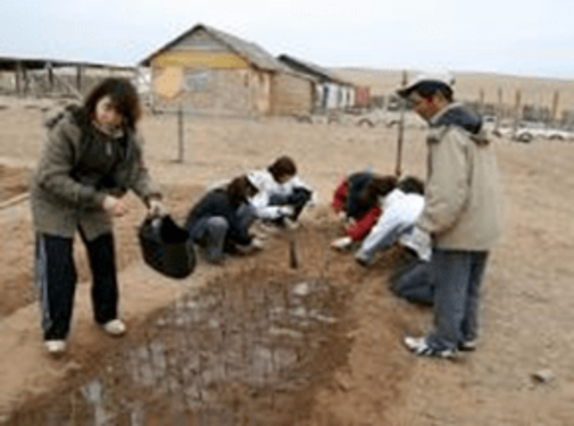 1990年以前はモンゴルの10%を占めていた森林は、7%に減少。管理のない野放図な伐採と、山火事が主因。その結果、保水力が低下し、川の水位・水量も低下。元の森に戻るまでは100年以上かかる。MCEは2001年から植林に取り組み、NICEグリーニング・アジア基金も活用しながら、国際ワークキャンプで養護施設CCMが郊外に持つ畑の周辺で数百本を植林。この時期だけ、植林に適する。