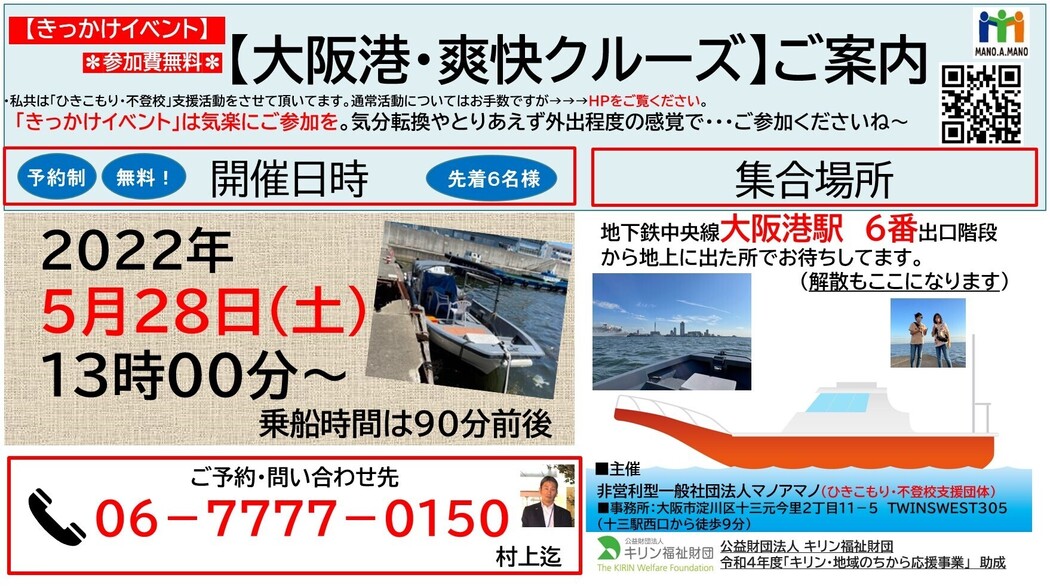 - 第一歩きっかけイベント 大阪港クルーズ 気分転換・非日常体験ご案内