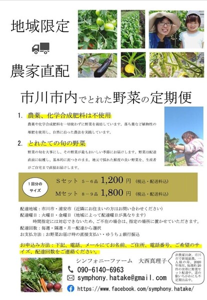 ご自身で農園まで来ることが出来る方限定でお願いします。クルマ駐車場、駐輪場は無料で可能です。 |