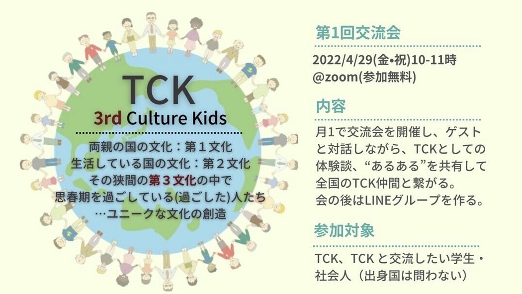 TCK、TCKと交流したい学生・社会人(国籍は問わない) |