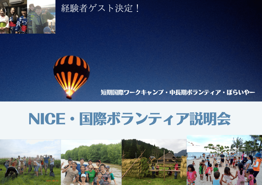 NICEの行っている国際ボランティアの説明会です!当日は経験者が二名ゲストとして来てくれます☆