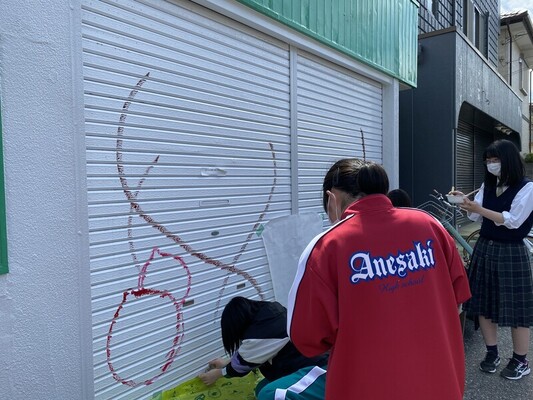 高校生のシャッターアートで商店街が華やかに