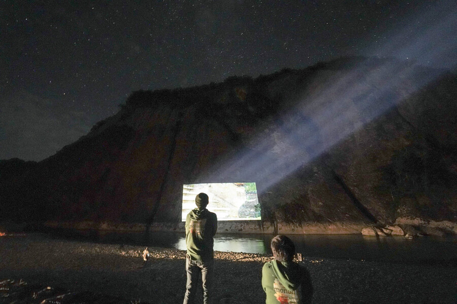 この「一枚岩」を目の前に臨む立地にある、「道の駅一枚岩 Camp&Food monolith」代表である古座川町出身の田堀穣也さんが、地域活性化を目的に取り組む一枚岩をスクリーンにした映画祭プロジェクト(『大地を見上げる映画祭』)とNICEは連携。