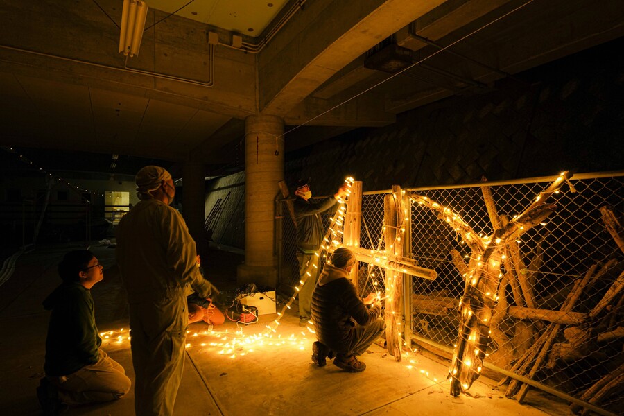『大地を見上げる映画祭vol.1』開催に向けた会場の設営や装飾作業