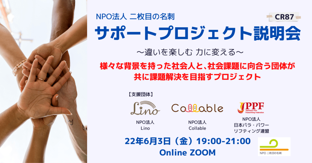 - NPO二枚目の名刺サポートプロジェクトメンバー募集!「違いを楽しむ 力に変える」