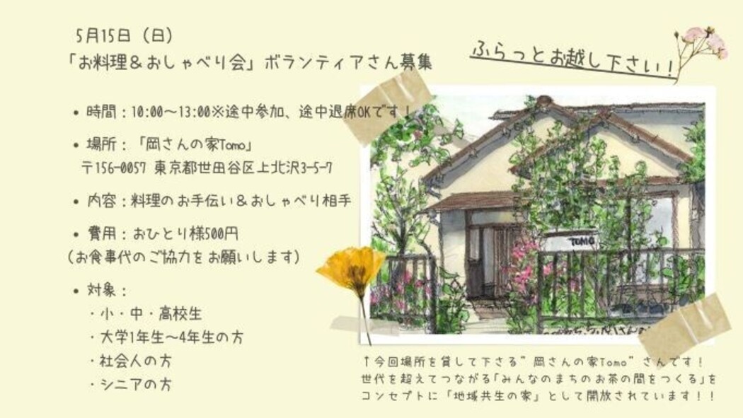 - 人生の大先輩と一緒にお料理のお手伝い&おしゃべり♪学生ボランティアさん募集!