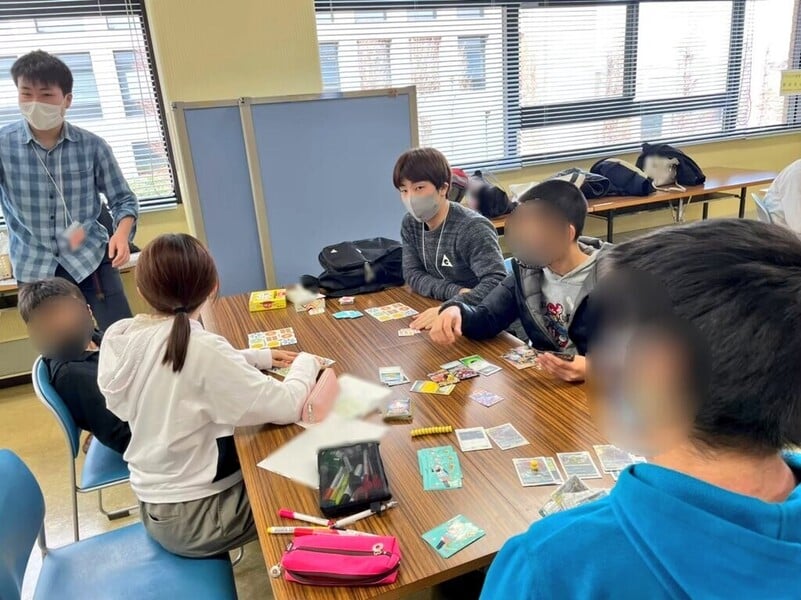子どもとゲームであそんだり話したりして関わっています。あすのちではみんなで対戦できるボードゲームやホワイトボードへのお絵描きが人気です。
