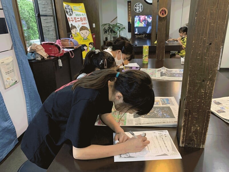 読解力向上・子どもの居場所作りの為に、西日本新聞エリアセンター二日市の店舗内で新聞を読んで、問題を解く。そして宿題等を終わらせて遊ぶ。小学校4年~6年生のキッズが毎週10名以上毎週金曜日に集います!