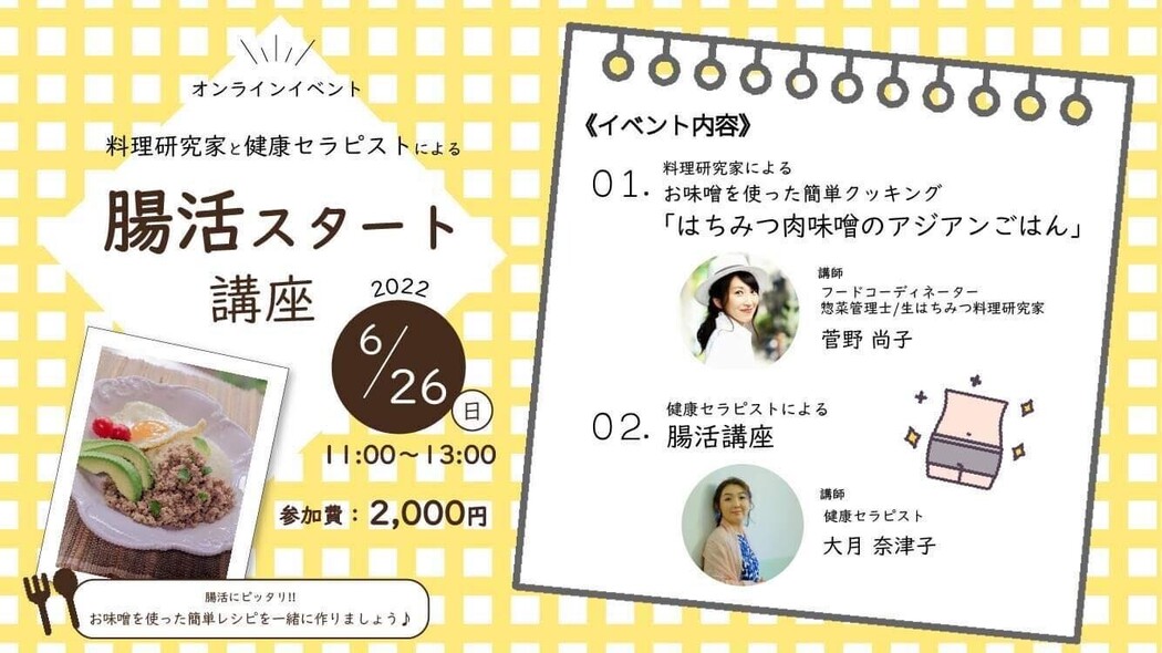 - 料理研究家と健康セラピストによる腸活スタート講座