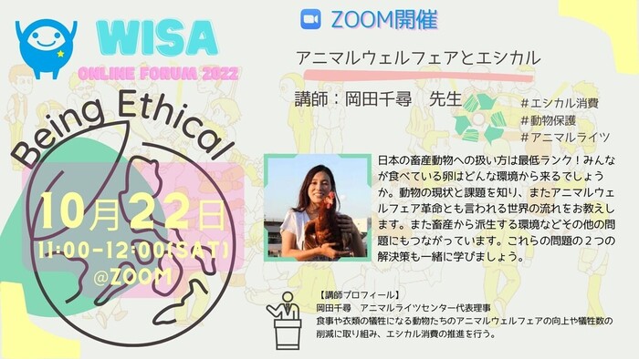 Wisa エシカル理解のためのオンラインフォーラム#3「エシカルってなぁに? 第三回『アニマルウェルフェアとエシカル』」