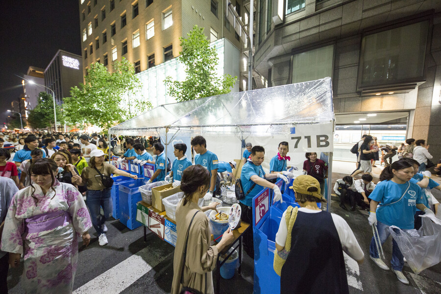 祇園祭ごみゼロ大作戦は、繰り返し何度も洗って使用できる「リユース食器」を露店や私有地の仮設店舗などに導入し、ごみの減量と散乱ごみの防止を実施する日本最大級の取組です。