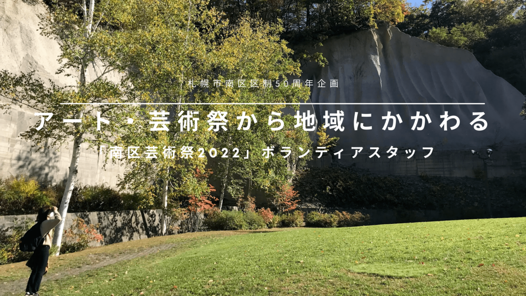札幌市南区区制50周年を記念して開催される「南区芸術祭2022 ミンナミニイクミナミナク」でのボランティアです。アーティストとの展示準備、来場者向けのワークショップや会場巡回などを行います。