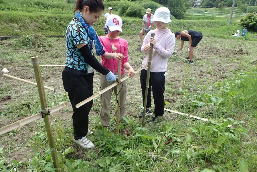 施設の方に教えてもらいながら、農耕地の整備や川掃除、草刈りなど、グループに分かれてさまざまなワークを行います。