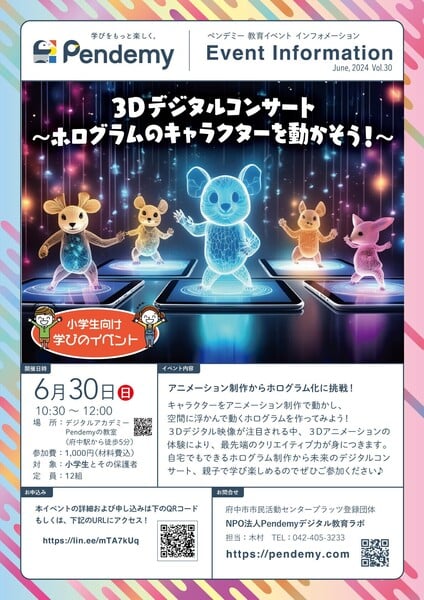 小学生向けデジタル教育を行う府中市市民活動団体として、毎月学びのイベントを開催