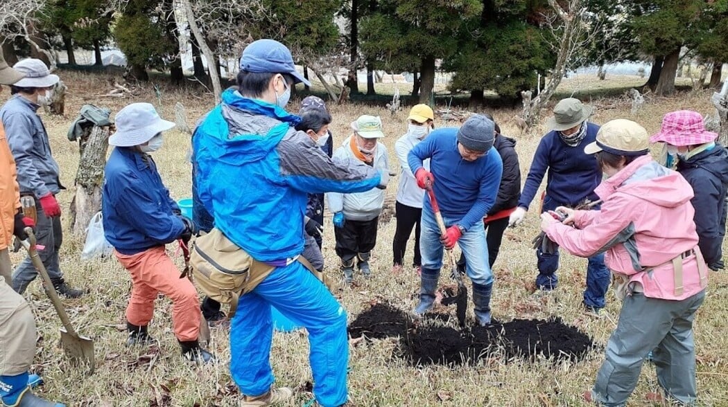 一年を通してクリ園を維持するための作業や技やコツを学びます。里山の恵みを楽しみながら、クリ山の手入れの仕方を習います。人の手の入ったクリ園の草地は生物多様性の源となっています。