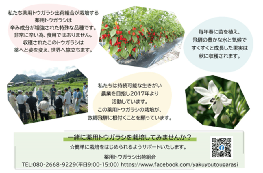 ぜひ薬用トウガラシを飛騨の特産品として、身近に感じていただければと思っていますので、ご協力のほどよろしくお願いします!
