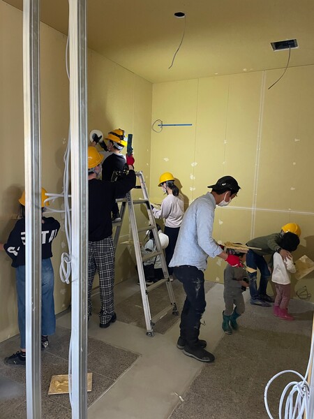 普段出来ない左官や塗装をする為に集まった人同士が〝建築〟という行為を通じて知り合い、一緒に場を作っていく。