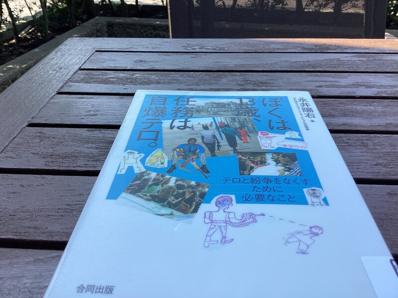 団体代表者の著書、「ぼくは13歳、任務は自爆テロ。: テロと戦争をなくすために必要なこと」- 永井 陽右氏の文章の一節にある