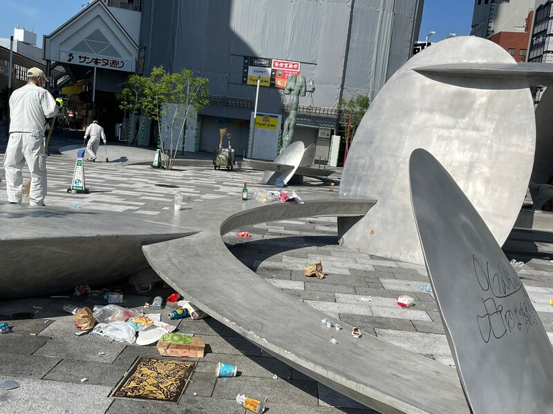 雨の日はアーケードのあるところをゴミ拾いしていますが、