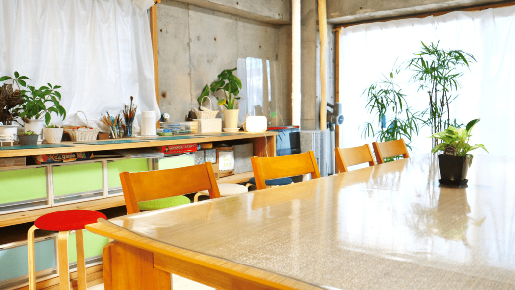 『アットホームな雰囲気で居やすい場所だと感じています。それぞれが好きなことをしたり、一緒に作業をする楽しさを感じられる場所だと思いました。室内には、観葉植物や子ども達が作成した作品が飾られていてとても落ち着く雰囲気です。』