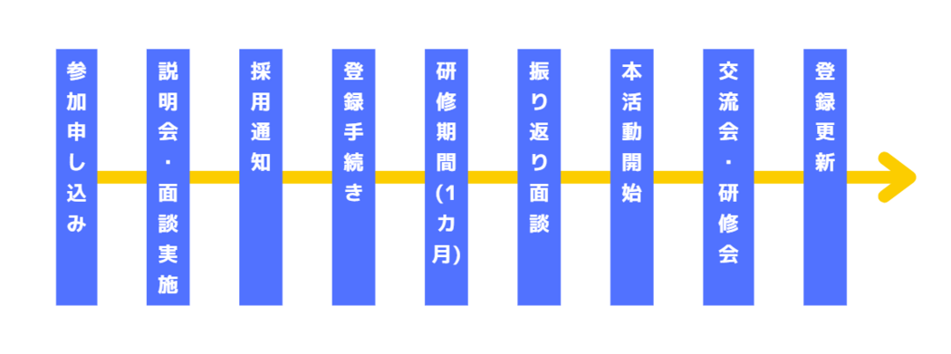 ・採用の前に1度、説明研修会にご参加いただきます。※日程につきましては、ホームページをご確認ください。