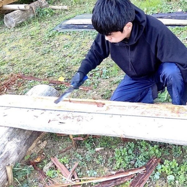 ●減災体験伝承プログラム用の炊事場にセルフビルド掘立小屋ボランティア500名と2年間かけて
