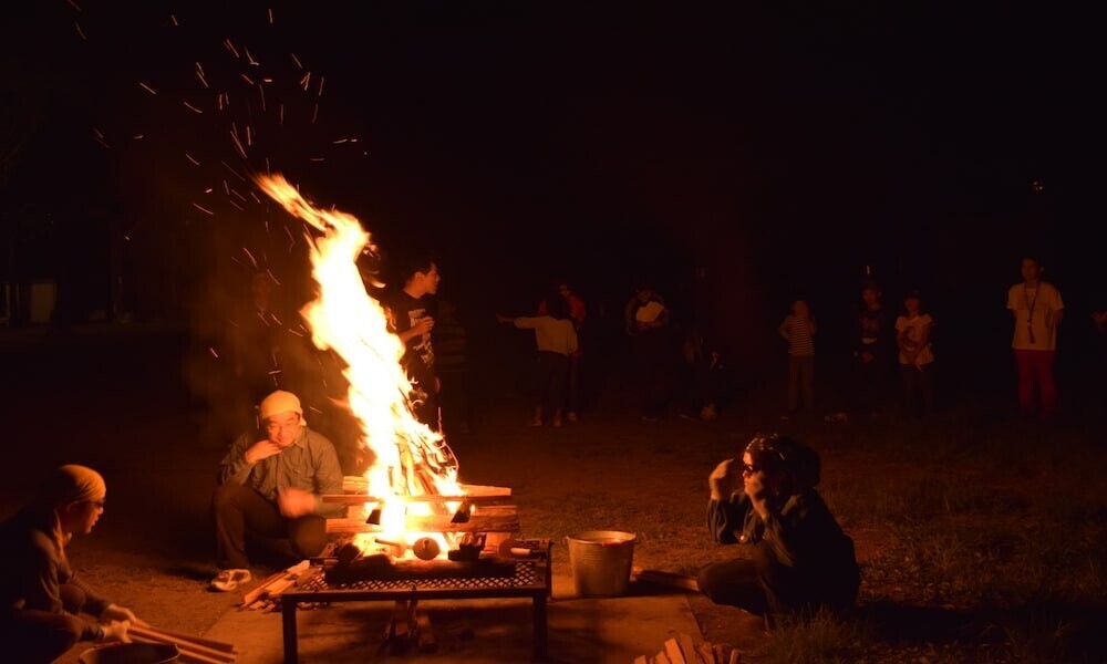 キャンプ本番の内容:野外炊事、テント泊、ウォークラリー、キャンプファイヤー等