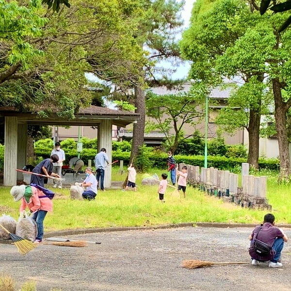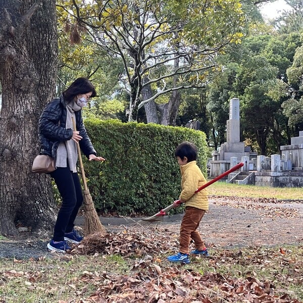 作業は簡易清掃(落葉清掃/草むしり/墓碑磨き等)の後、参加者全員で黙祷を実施します。