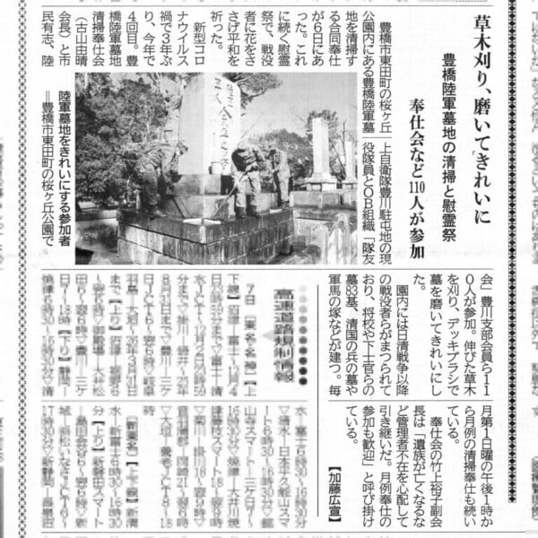- 毎月定例の豊橋陸軍墓地清掃ボランティア
