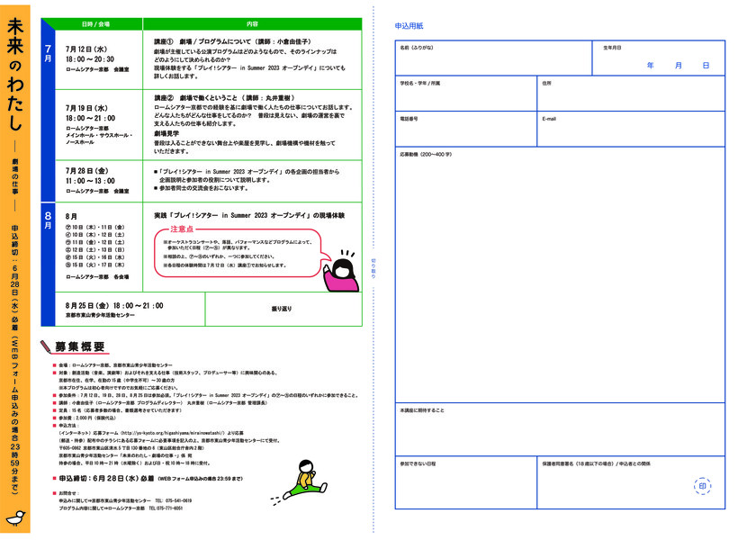 「未来のわたし」は、ロームシアター京都と京都市ユースサービス協会が連携し、