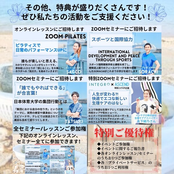 ※当日は参加せずに寄付のみもしくは、オンラインセミナーやレッスンへの参加も可能