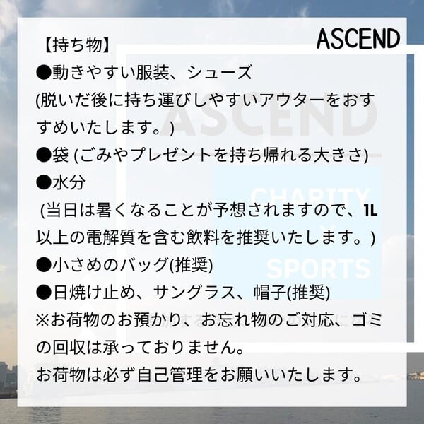 現在、スポーツ×社会貢献イベントを企画しています、ASCENDです。