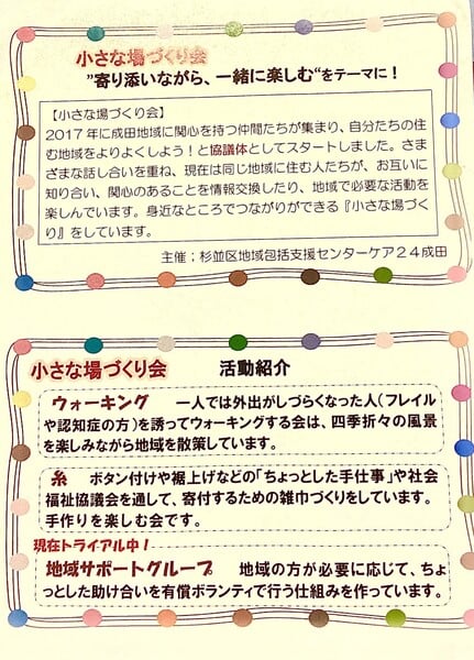 - 杉並区成田)小さな支え合い活動で、地域交流デビューしてみませんか?