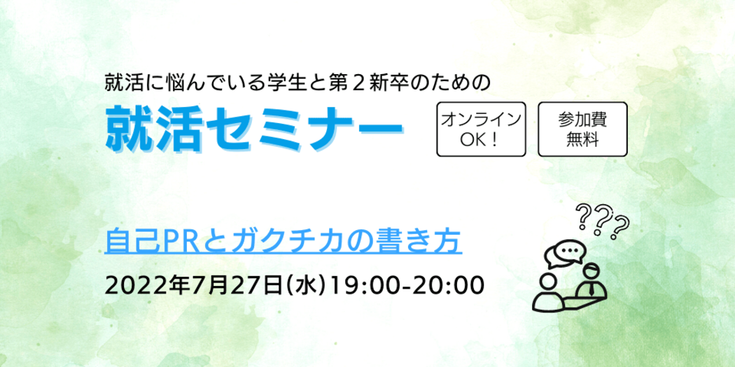 - 【近日開催】就活に悩んでいる学生のためのセミナー『自己PRとガクチカの書き方』