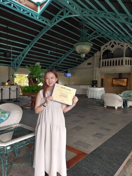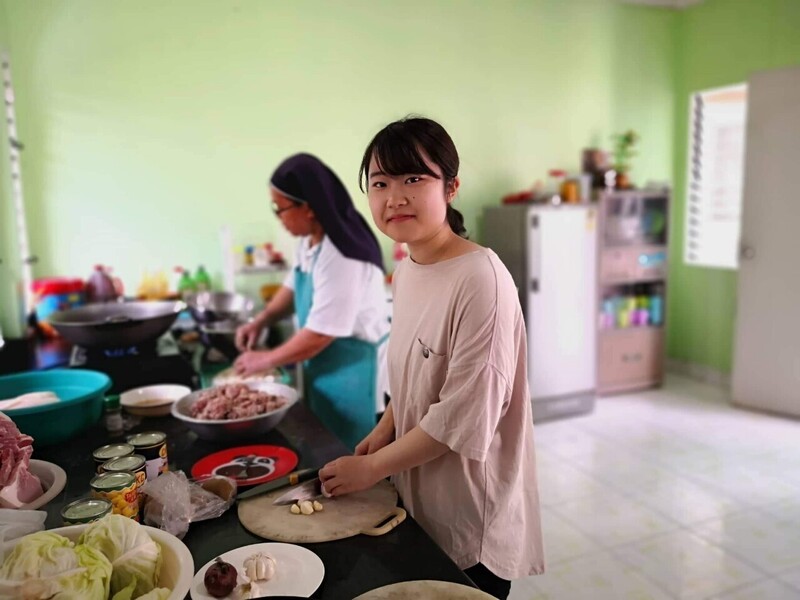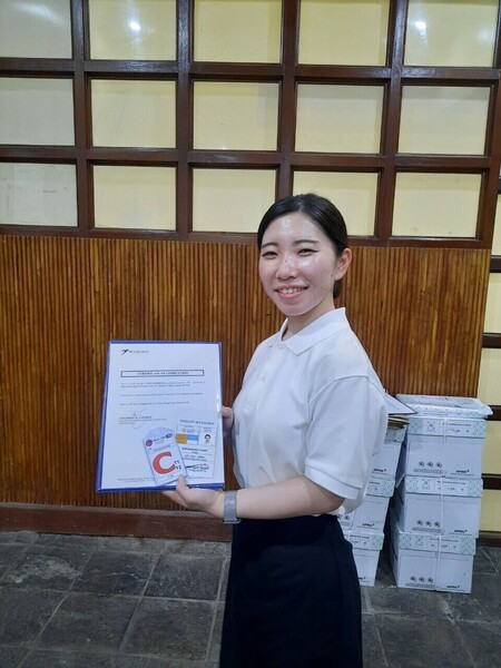 私は約三週間、化粧品販売会社でインターンシップをさせていただき、接客、出張販売、翻訳など、多岐にわたる業務を経験させていただきました。中でも、特に心に残っているのは、毎週金曜日に行われたフードギビングの活動です。日本では、子どもたちが食べ物に困ることはほとんどなく、食事を得られることが当たり前の日常です。そのため、朝早くから大勢の子どもたちが列をなして食べ物を待ち望んでいる光景は、正直なところ大きな衝撃を受けました。しかし、食べ物を受け取った子どもたちから大人まで、皆が皆、目を輝かせながら『ありがとう』と感謝の言葉を伝えてくれました。フードギビングを通して、食べ物に対する感謝の気持ちや、支援が必要な人々に直接貢献できる喜びを実感しました。この経験を通して、食べ物に困っている子どもたちを見かけたら、自らも食事を分け与えるようになりました。