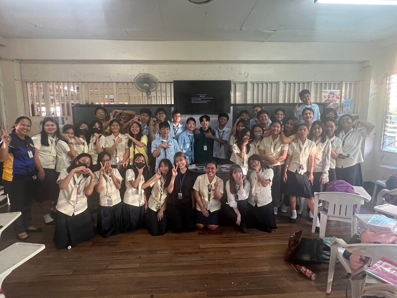 今回3週間の期間で中学校の生徒と一緒に授業を受け、時には生徒に授業をするといった実践的な経験をすることができました。最初は生徒と仲良くするところから始めなくてはならなくて心配や不安もあったが、その不安はすぐになくなるように生徒さんから積極的に話しかけてもらったおかげで初日から仲良くなることができました。その後も授業では理科や算数、フィリピンといった英語以外の科目の授業にも参加しました。最後の週は主に先生となり授業をしました。具体的にgrade7には詩について、grade8には桃太郎を教えました。幸運にも日本に関連した内容だったので授業の計画を練ることは簡単だったが実際に生徒に授業をするのは思っていたよりもはるかに難しく、特に50分を想定して自分で計画した授業が実際には2,30分しか使えていなかったことが悔しかったです。しかし問題点を見つけそこを何クラスにも教えるたびに改善していくことができ、時間も伸びたので達成感を味わうことが出来ました。また、グダグダな状態で授業が終わってしまっても生徒さんが励ましてくれたり、授業中もアクティビティやクイズなどで生徒に答えを促すとみんな元気よく発表をしてくれるなど雰囲気作りが素敵なクラスで授業ができた。さらに授業日以外に数日学祭の日があり準備片づけ以外にもサプライズで歌を披露したり、現地のご飯を生徒と一緒に食べたりとすごく歓迎してくれて感動しました。3週間というあっという間の時間を過ごしましたが間違いなくかけがえのない3週間になりました。