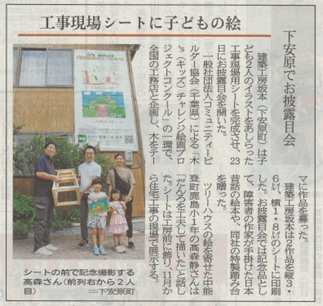 子どもたちの絵を印刷して工事現場に貼り出してくれる建築会社さん、木材会社さんを