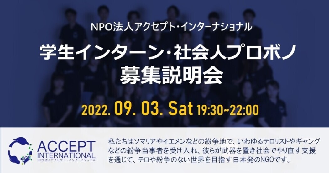 この募集の受入法人「NPO法人アクセプト・インターナショナル」をフォローして、