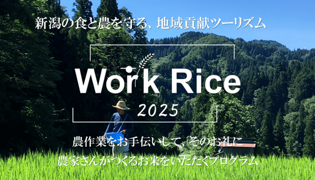 私たちは、今後も新潟の農山村地域の農業を維持していくためには「作り手」を育成することと同時に、「作り手」をサポートする「支え手」(関係人口)を増やしていく必要があると考えます。このためにいがたイナカレッジでは、稲作を中心とする農山村地域の農業の「支え手」を増やしていくため、都市部の人たちに米農家の農作業をお手伝いいただいたり、米農家が不得手とするブランド化や販売促進活動などのサポートに対して、米農家が生産した米とを交換する(対価として米を支払う)プログラム『Work Rice』を立ち上げました。