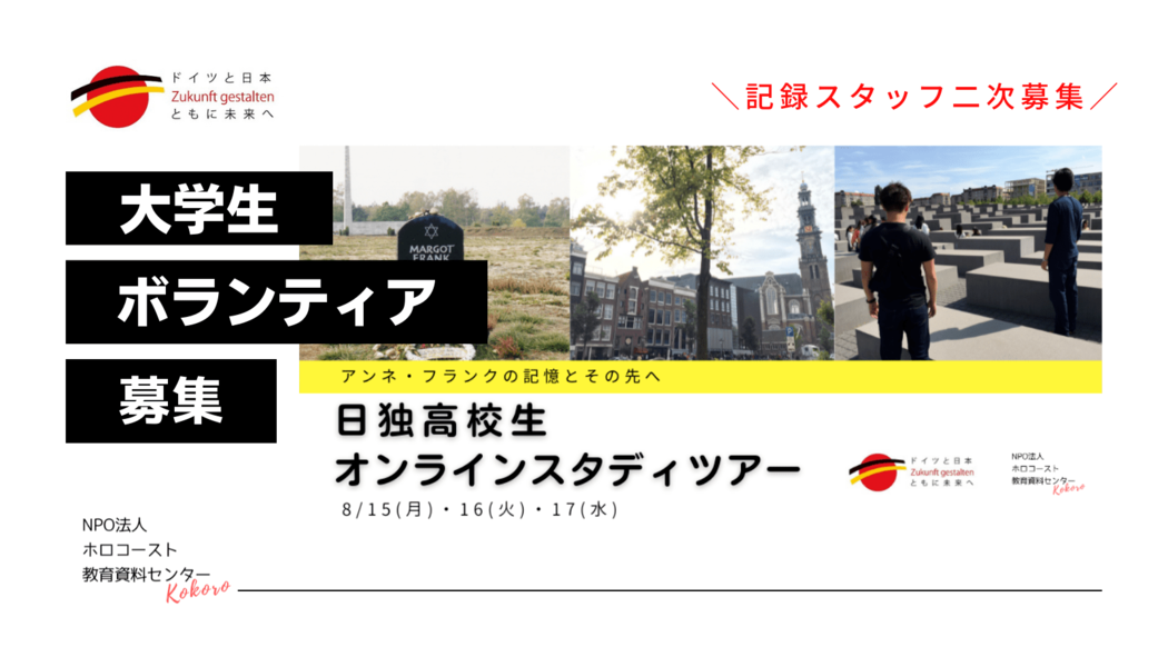 この募集の受入法人「ホロコースト教育資料センター(愛称Kokoro)」をフォローして、
