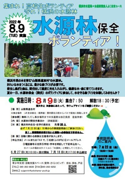 - 【高校生募集!】山梨県道志村で水源林保全のボランティア