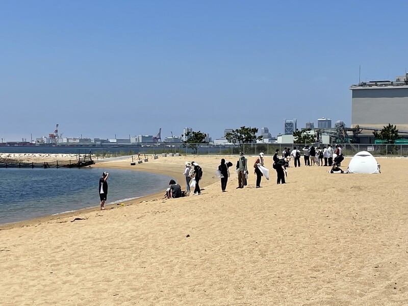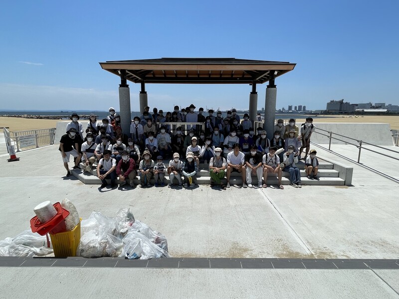 芦屋浜のごみを71名のボランティアの方と一緒に拾いました。ごみ袋9個分のごみを回収することができました。