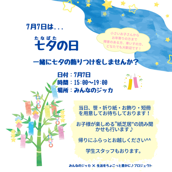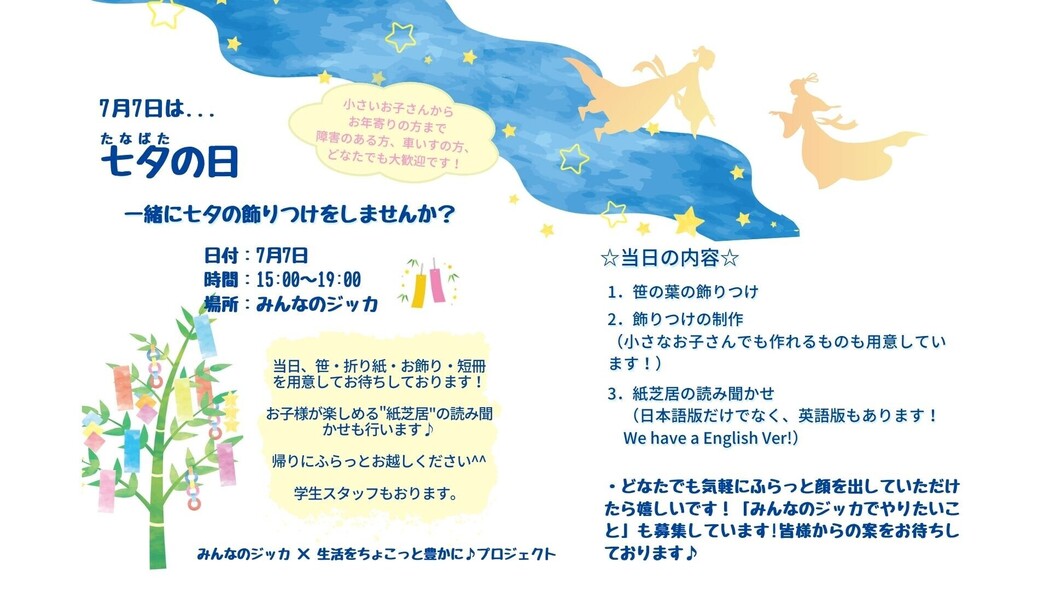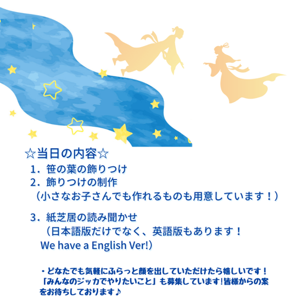 【単発】「七夕」イベント開催!!地域の方同士の繋がりをつくるお手伝いさん募集中♪