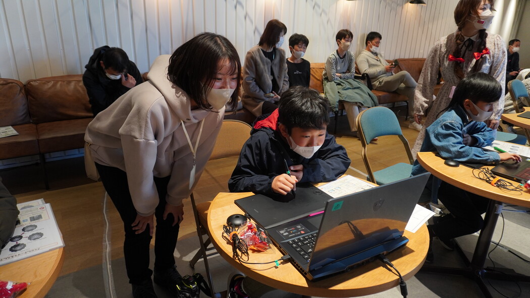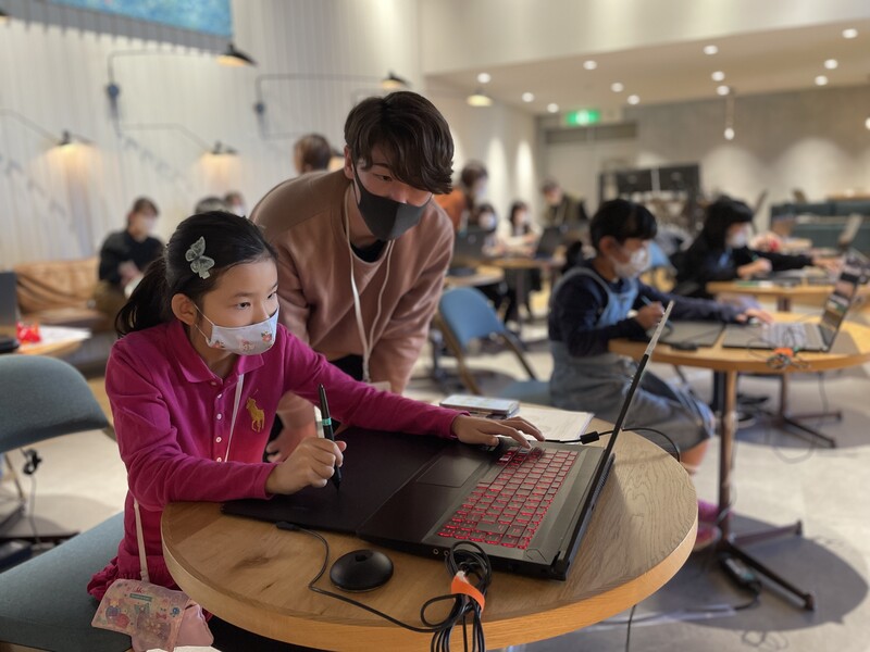 アシスタントスタッフの方にも、ペンタブレットの使い方とCG制作方法のレクチャーをお子様にして頂きます。