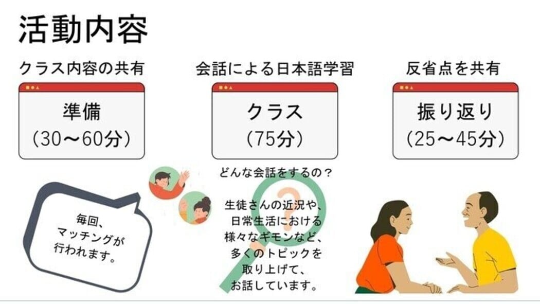 A. "日本語教室 だんらん オンライン"における, 基本的な業務.