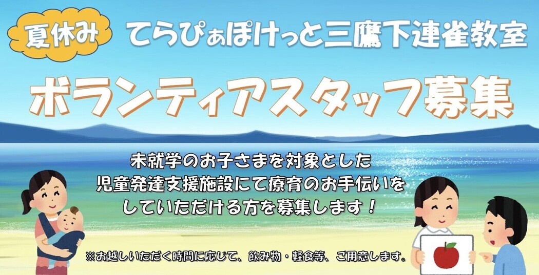 この夏、"てらぴぁぽけっと三鷹下連雀教室"では、ボランティアとして活動に参加していただける学生の方を募集しています✨