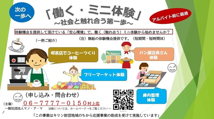 事業主(店主)様へ 貴店で「働くミニ体験」の機会を頂けませんか?!(第一歩応援)
