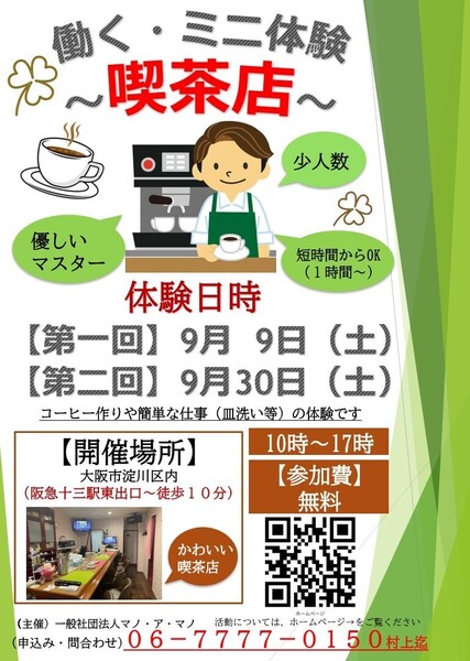 - 事業主(店主)様へ 貴店で「働くミニ体験」の機会を頂けませんか?!(第一歩応援)