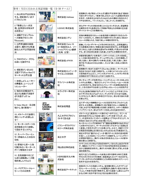 最新のテクノロジーとソリューションにより障害のある方もカーレースを楽しめるようにするための社会実験コンテストです。視覚や聴覚を補助するツールや遠隔でレースを体感できるツールなど最新技術によるソリューションを体験できる貴重な機会です。本コンテストに関心を持ってくださる方のご応募をお待ちしております障がいのある方がレース観戦を楽しもうとするときにある課題やハードルを乗り越えるアイディアを募集し、一次選考を通過した18団体が、10月15日・16日に岡山国際サーキット(美作市)で行われる「スーパー耐久レース」にて実証実験を行います。