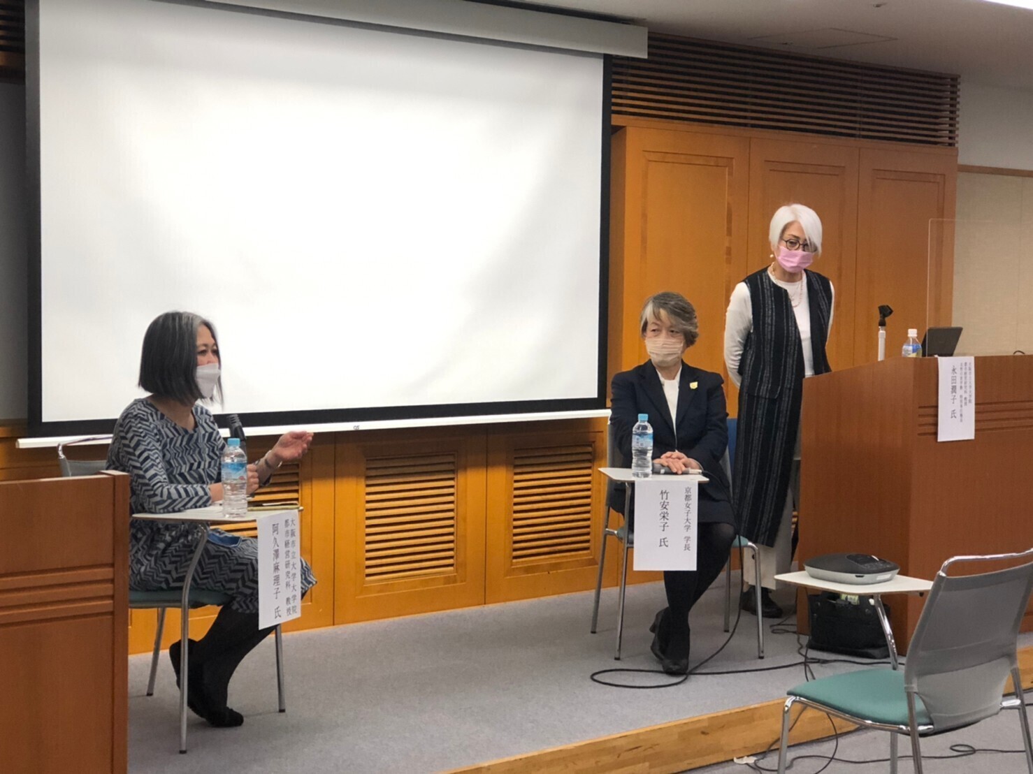 京都女子大学 学長の竹安栄子先生、大阪市立大学大学院都市経営研究科 教授の阿久澤麻理子先生をお迎えし、政治とジェンダーの視点から女性を巡る現状と課題についてのシンポジウムを開催!